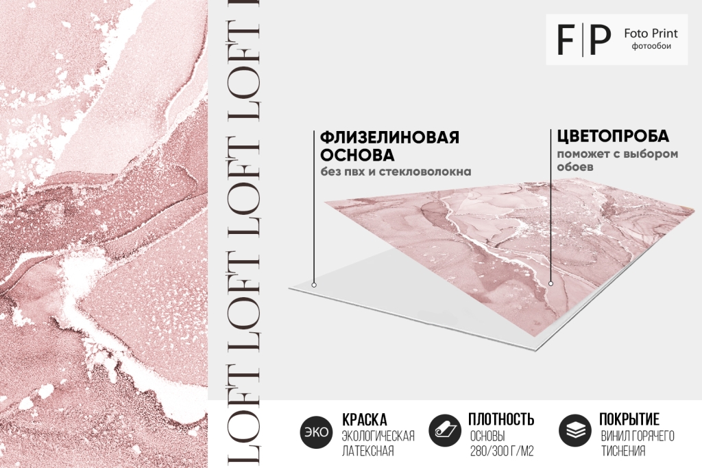 Фотообои Foto Print «Розовый мрамор» украсят любое помещение и превратят ваш интерьер в стильное и современное пространство. Эти высококачественные фотообои, изготовленные по особой технологии, легко монтируются, устойчивы к выцветанию и не требуют серьезного ухода. Они подойдут для любой комнаты и гармонично вписываются в различные интерьерные стили. Выбирайте фотообои для вашего дома и наслаждайтесь уютной атмосферой и прекрасным видом каждый день!