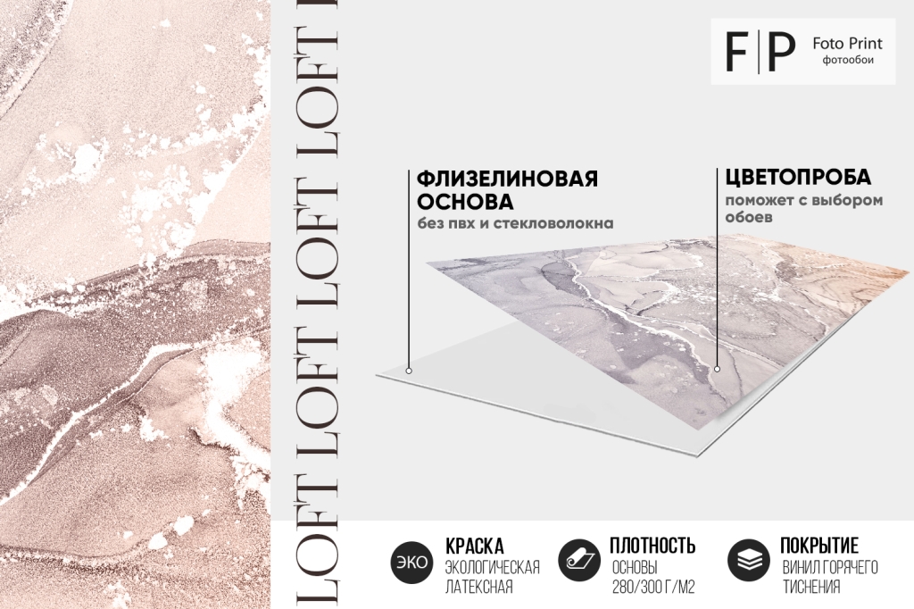 Фотообои Foto Print «Серо-бежевый мрамор» украсят любое помещение и превратят ваш интерьер в стильное и современное пространство. Эти высококачественные фотообои, изготовленные по особой технологии, легко монтируются, устойчивы к выцветанию и не требуют серьезного ухода. Они подойдут для любой комнаты и гармонично вписываются в различные интерьерные стили. Выбирайте фотообои для вашего дома и наслаждайтесь уютной атмосферой и прекрасным видом каждый день!
