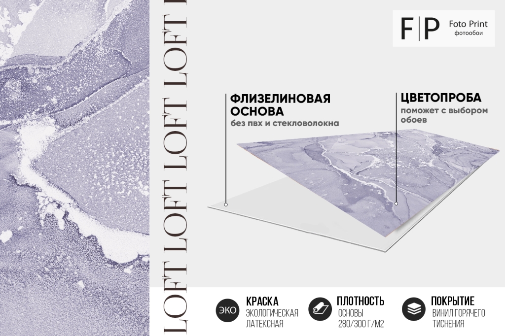 Фотообои Foto Print «Светло-сиреневый мрамор» украсят любое помещение и превратят ваш интерьер в стильное и современное пространство. Эти высококачественные фотообои, изготовленные по особой технологии, легко монтируются, устойчивы к выцветанию и не требуют серьезного ухода. Они подойдут для любой комнаты и гармонично вписываются в различные интерьерные стили. Выбирайте фотообои для вашего дома и наслаждайтесь уютной атмосферой и прекрасным видом каждый день!